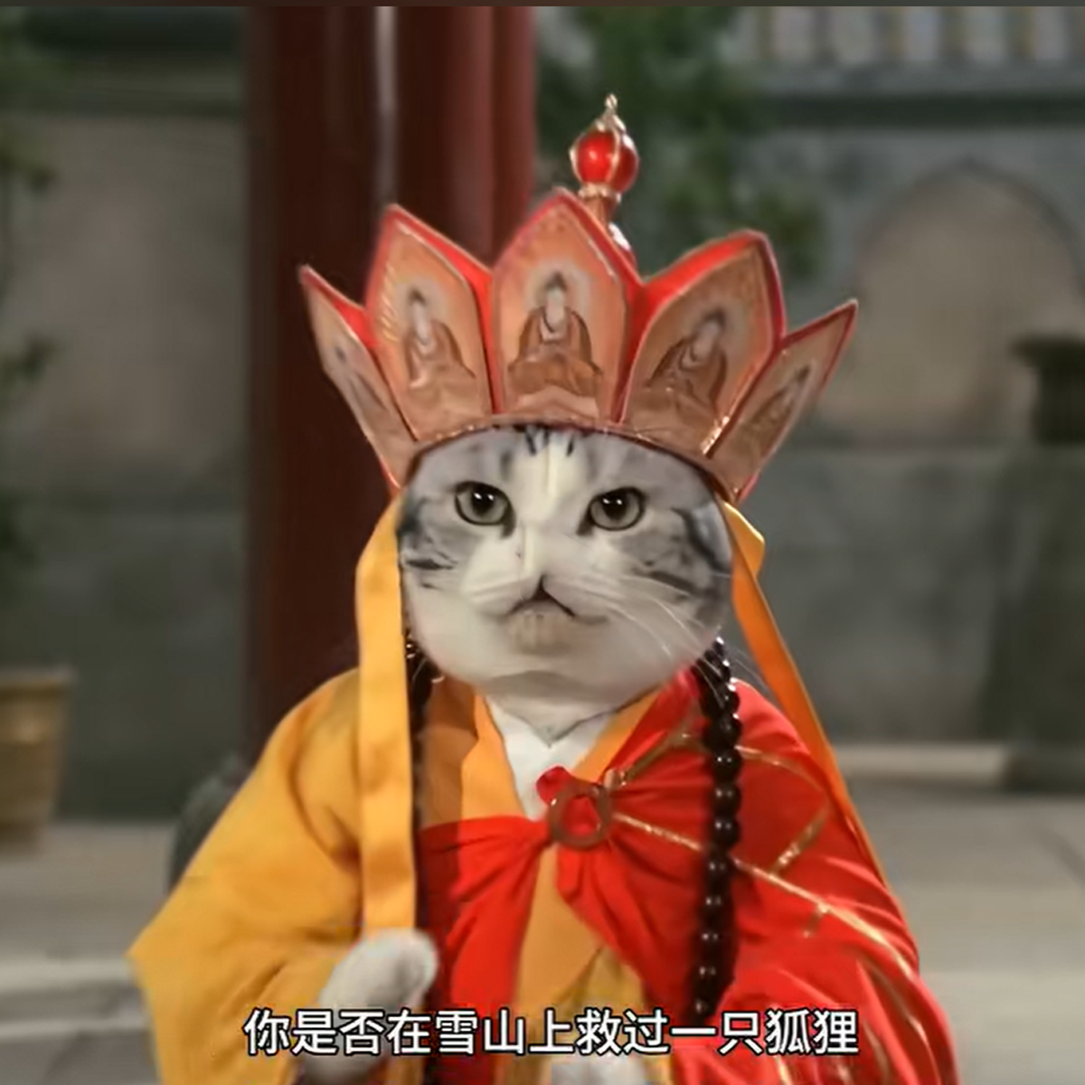 一只身披袈裟头戴五佛冠的神奇喵咪,拥有万佛朝宗的绝世神功